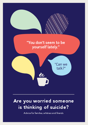 Information for whānau and friends to identify and offer support to someone who may be feeling suicidal. This resource gives information and suggestions about how to support people who might be distressed or in suicidal crisis. (Produced by the Mental Health Foundation.)