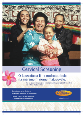 Poster for the Fiijian community (with text in Fiijian) promoting cervical screening (smear test).