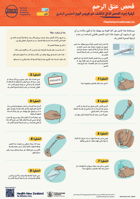 Cervical screening: how to do the HPV self-test Arabic A4 portrait poster HE1348