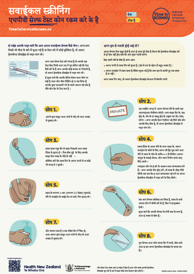 Cervical screening: how to do the HPV self-test Fijian Hindi A4 portrait poster HE1354
