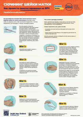 A4 portrait format poster in Russian giving step-by-step instructions for doing the cervical screening HPV self-test.