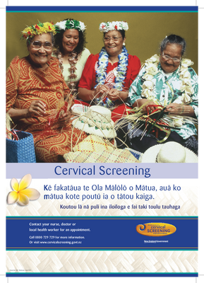 Poster for the Tokelauan community (with text in Tokelauan) promoting cervical screening (smear test).