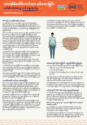 Resource in Burmese providing an overview of the Cervical Screening Programme and the range of options available to do a screening test. Designed to support people to decide which options are best for them (in consultation with their healthcare provider).