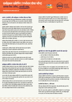 Resource in Hindi providing an overview of the Cervical Screening Programme and the range of options available to do a screening test. Designed to support people to decide which options are best for them (in consultation with their healthcare provider).