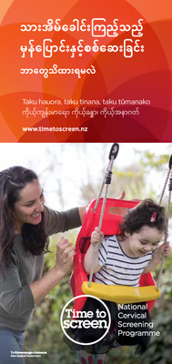 Information in Burmese for people who need to have a colposcopy and biopsy following an abnormal cervical screening test result. We would like to acknowledge the translation to Burmese provided by The Translation Service team for Te Tari Taiwhenua, Internal Affairs on behalf of Te Whatu Ora Nelson Marlborough, to help serve their growing Burmese community. Please note that orders are restricted to 20 copies.