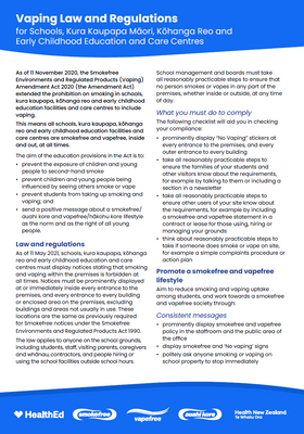 Vaping Law and Regulations for Schools, Kura Kaupapa Māori, Kōhanga Reo and Early Childhood Education and Care Centres HE1515