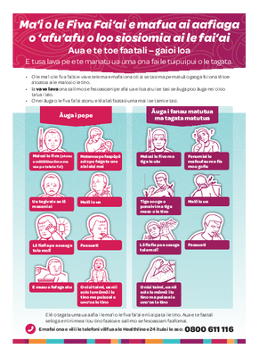 E mafai ona e vili le telefoni vilifua a le Healthline e 24 itula i le aso: 0800 611 116 – e tusa lava po ua uma ona vaai oe e se fomai poo se tausi soifua.