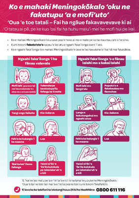 Telefoni ki ha toketā, kilīniki pe ko ha kilīniki ava he taimi po’uli pe ko e Healthline 0800 611 116 ‘o ‘oua toe tatali – tatau ai pē pe ko e ‘aho pe po’uli.
