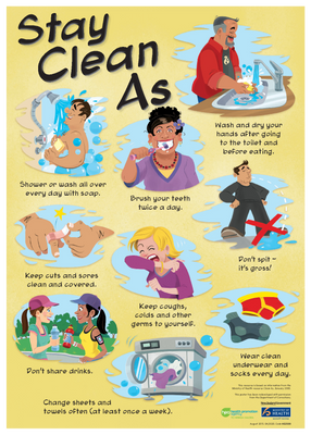 This poster is for adults and promotes key messages on germs, infections, washing, and basic hygiene.