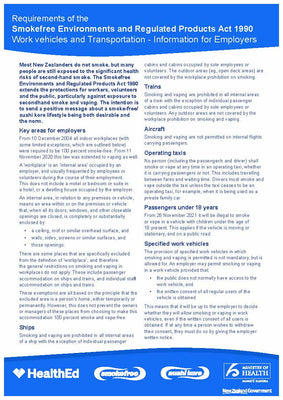Requirements of changes to the Smokefree Environments and Regulated Products Act 1990. Information for employers covering the smokefree law relating to ships, trains, aircraft, taxis, specified work vehicles and passenger service vehicles.