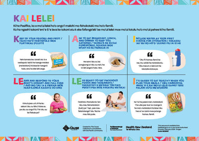 Simple messages, with pictures, about healthy eating. This resource was co-produced with the Pacific community and uses Pasifika design.