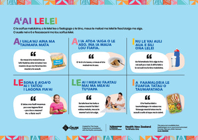 Simple messages, with pictures, about healthy eating. This resource was co-produced with the Pacific community and uses Pasifika design.