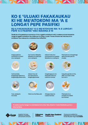 Meal ideas for Pacific babies and toddlers from 8 to 10 months old. Includes Pacific meal ideas for babies learning to eat, tailored to their age and stage. This resource was co-produced with the Pacific community and uses Pasifika design.