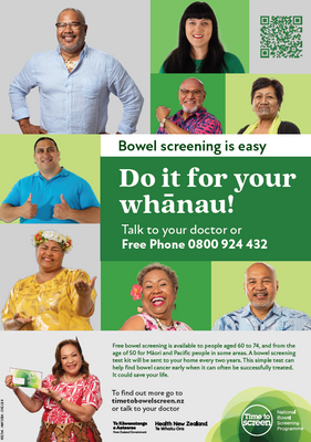 Bowel screening is easy - Do it for your whānau! poster A3 English - HE2734