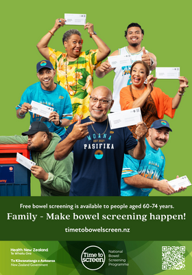 Family - Make bowel screening happen! Moana Pasifika poster A3 English - HE2735