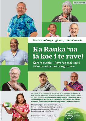 National bowel screening campaign posters, A3 size in English, Cook Islands Māori. Posters can be used by anyone who wants to support and promote the bowel screening programme.