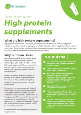 The two-page Behind the Hype information sheets contain evidence-based advice to help you provide clear consistent information to consumers. Protein supplements are increasingly popular with people playing sports or working out. This information sheet explains why most people involved in regular physical activity don't require supplements.