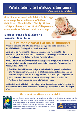 Mo nisi fa‘amatalaga e ugia i le su‘eina o le lelei o le fa‘alogo a tamaiti, pe fia maua fo‘i se kopi o lenei pepa mai le au‘upega tali‘ilagi (initaneti) asiasi atu i le Matāgaluega o le Soifua Malōlōina pe vala‘au atu fo‘i i le telefoni le totogia –24 itulā o le fautuaga mo le soifua malōlōina, i le (0800 611 116).
