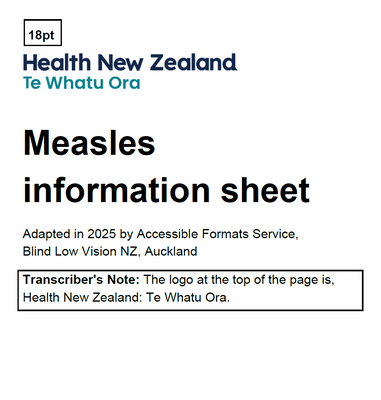 - Visit the Health New Zealand | Te Whatu Ora website Measles