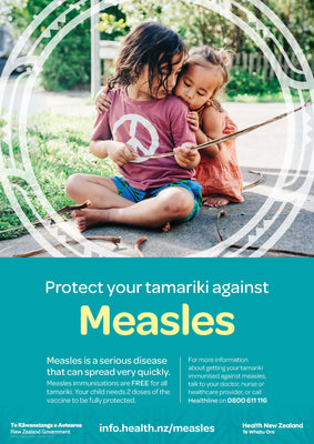A3 poster promoting measles immunisation for tamariki.