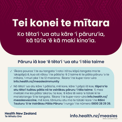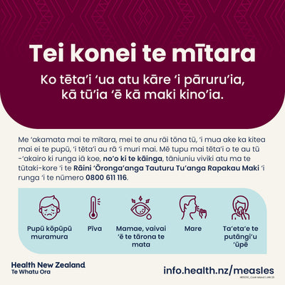 Measles is here - social tile - Cook Islands Māori - HE5029