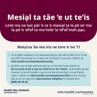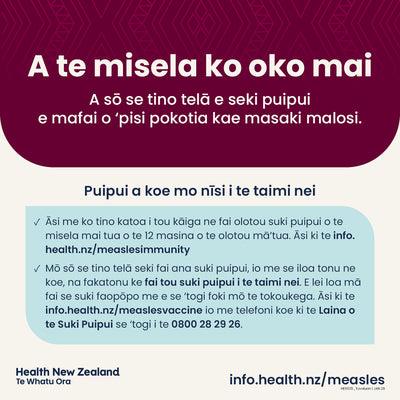Measles is here - social tile - Cook Islands Māori - HE5030