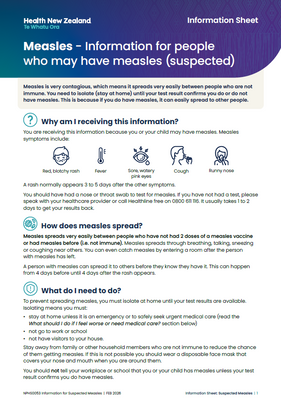 Measles - Information for people who may have measles (suspected) - NPHS0053