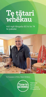 Gives brief information in te reo Māori promoting the free National Bowel Screening Programme for people aged 60–74, and directing to sources of additional information. Please note that orders are restricted to 50 units.