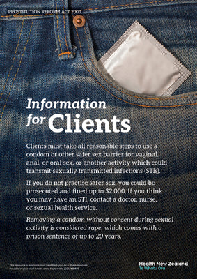 Health and safety requirements for brothels, sex workers and their clients under the Prostitution Reform Act 2003.