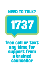 Business card sized information about how to contact 1737 for support from a trained counsellor.