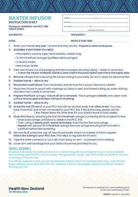 Home IV therapy Baxter infusor instruction sheet - HE3003