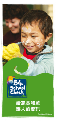 Pamphlet in traditional Chinese introducing and explaining the B4 School Check – the final Well Child health check in year before children start school.