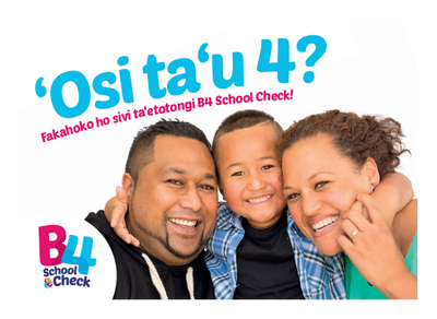 B4 School Check Promotional Card non-Auckland region - Tongan version - HE2454
