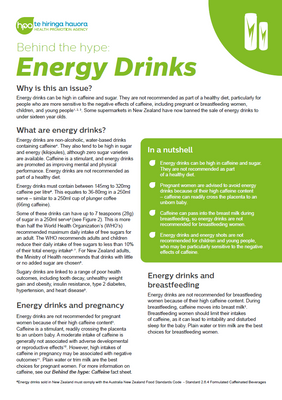 Some supermarkets in New Zealand have banned the sale of energy drinks to under sixteen year olds. This information sheet will provide information to help you explain why energy drinks are not recommended as part of a healthy diet, particularly for children, and for people who are pregnant or breastfeeding.