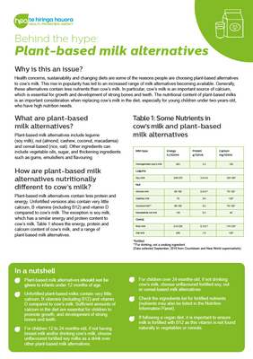 Health concerns, sustainability and changing diets are some of the reasons people are choosing plant-based alternatives to cow's milk. This information sheet provides advice and recommendations about replacing cow's milk in the diet, particularly for young children, who have high nutrition needs.