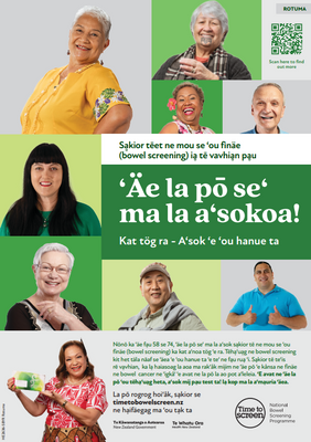 Bowel screening campaign posters, A3 size in Rotuman. Posters can be used by anyone who wants to support and promote the bowel screening programme.