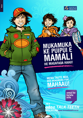 Web-only explanation in Niuean of the free basic oral health service available from birth until the eighteenth birthday, together with advice about cleaning and looking after teeth, and about healthy food for healthy teeth.