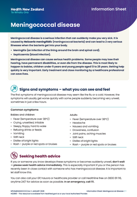 - Get vaccinated if it’s recommended for you – read the prevention section of this information sheet and visit Meningococcal vaccines - Health New Zealand | Te Whatu Ora
