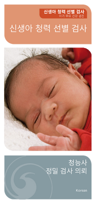 Pamphlet in Korean explaining why further hearing screening tests may be required; the procedures used, including a description of the auditory brainstem response (ABR) test; and what help is available if hearing loss is detected.