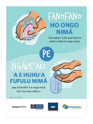 This A3 poster highlights the importance of good hand hygiene, by showing viewers how to correctly wash and dry their hands or use hand sanitiser. It is available in English, Māori, Hindi, Samoan, Simplified Chinese and Tongan.