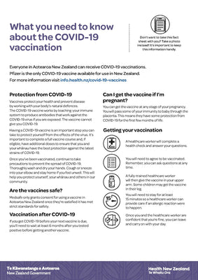 Before giving consent, the vaccinator will explain to you what the vaccine is for, the risks of having the vaccine, and why it is recommended for you. The vaccinator will explain what to expect after your vaccine and how and where to seek help if you have any concerns. You will receive this information verbally and take this fact sheet home. There will be time to have all your questions answered and you can also request an interpreter if you need one.