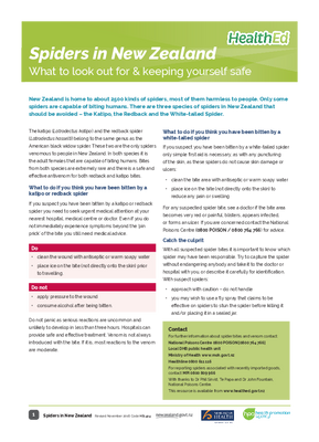 Information on harmful spiders in New Zealand – the katipo, the redback and the white-tailed spider – and how to deal with spider bites.