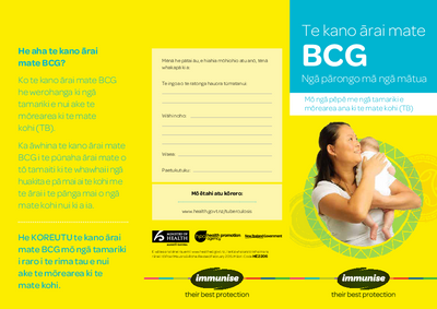 Te kano ārai mate BCG – Ngā pārongo mā ngā mātua. Web-only information in te reo Māori about tuberculosis (TB) and the BCG vaccination enabling parents/caregivers to make an informed decision about having their baby vaccinated.